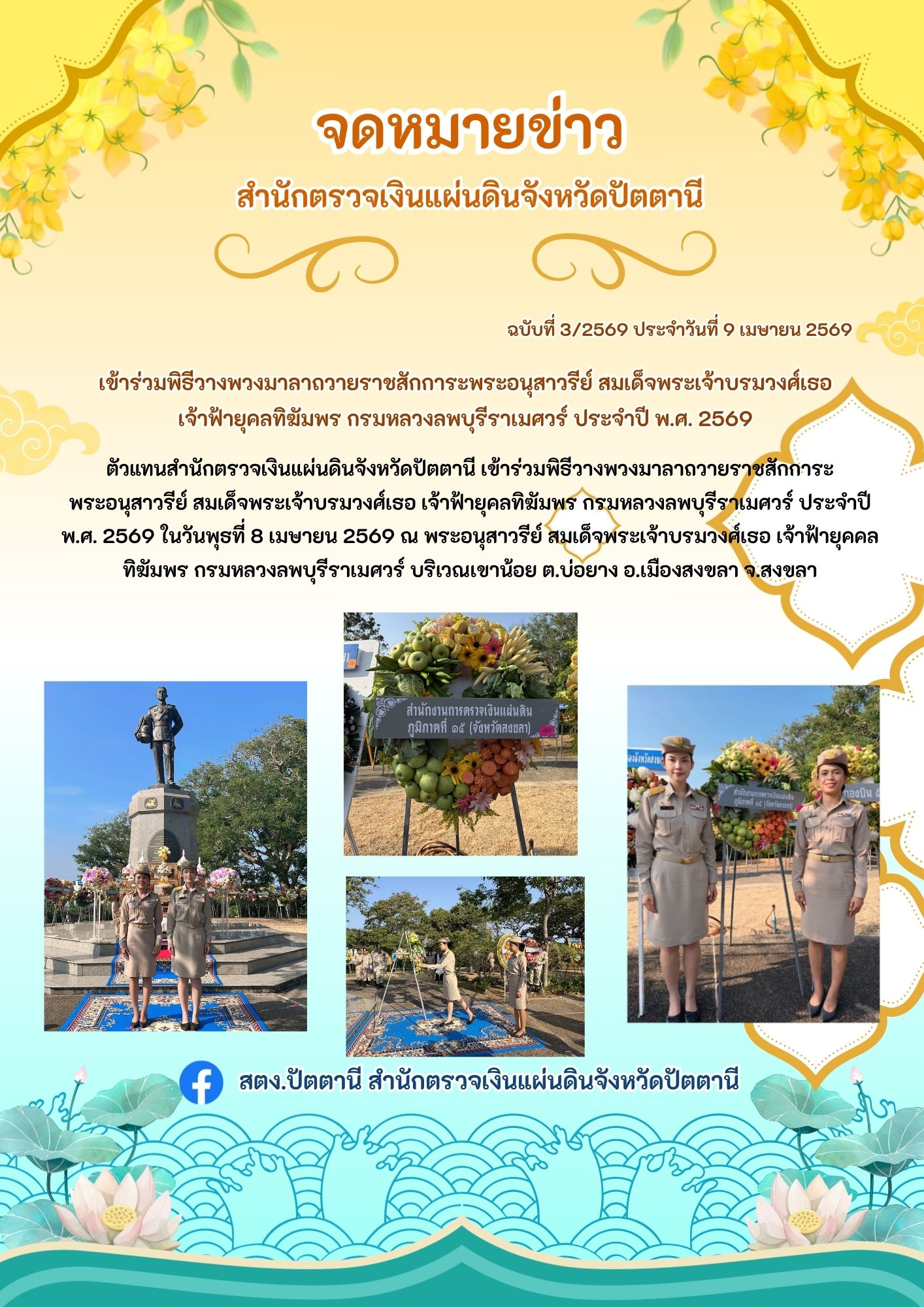 พิธีวางพวงมาลาถวายราชสักการะพระอนุสาวรีย์ สมเด็จพระเจ้าบรมวงศ์เธอ เจ้าฟ้ายุคลทิฆัมพร กรมหลวงลพบุรีราเมศวร์ ประจำปี พ.ศ. 2569งานราชพิธี/รัฐพิธี, ภาพกิจกรรมเมษายน 10, 2026เมษายน 10, 2026 Post Views: 40